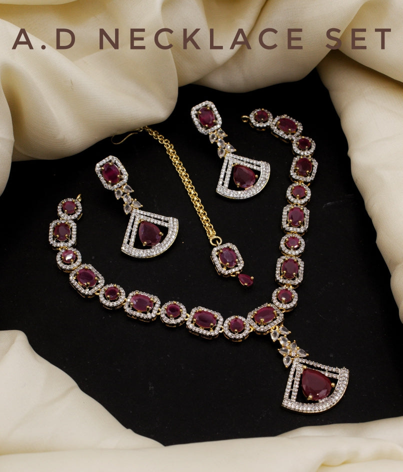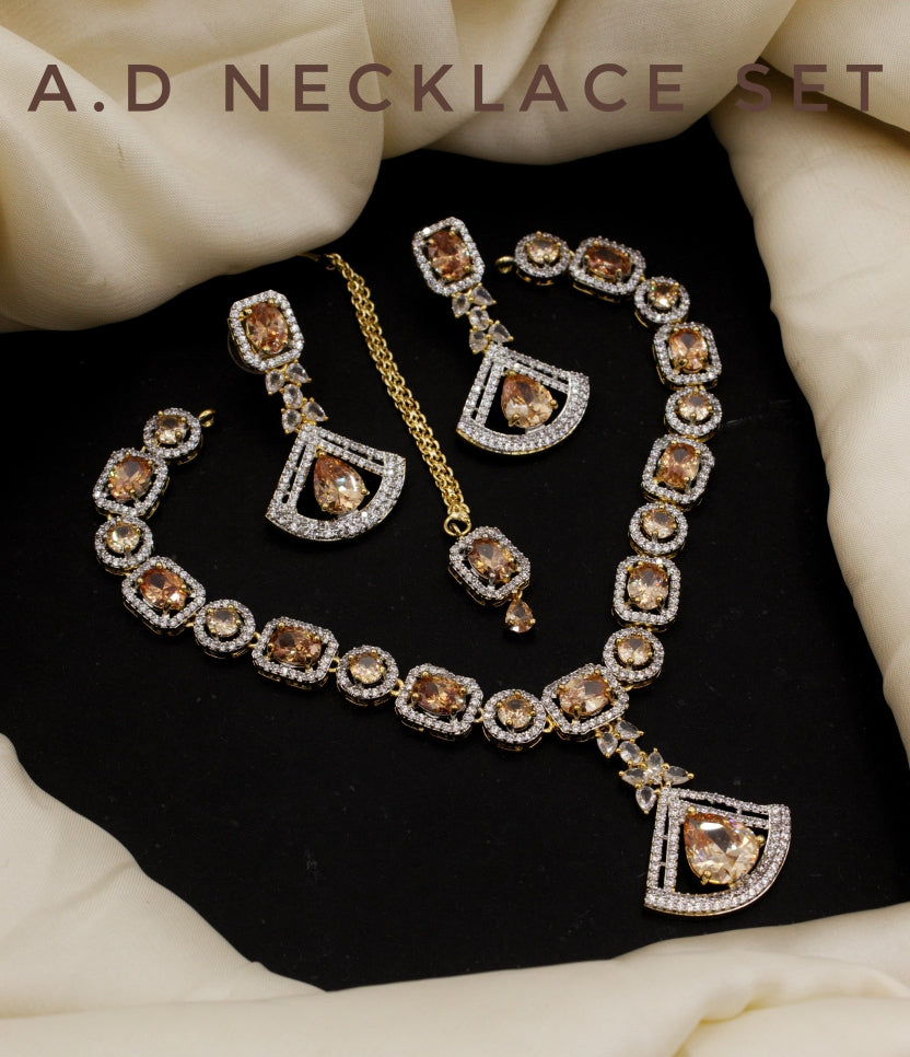 Step into a world of timeless glamour with our Premium American Diamond (A.D) Necklace Set, where classic elegance meets regal sophistication. Designed to make you shine brighter on every occasion, this set is perfect for those who value exquisite craftsmanship and dazzling beauty.