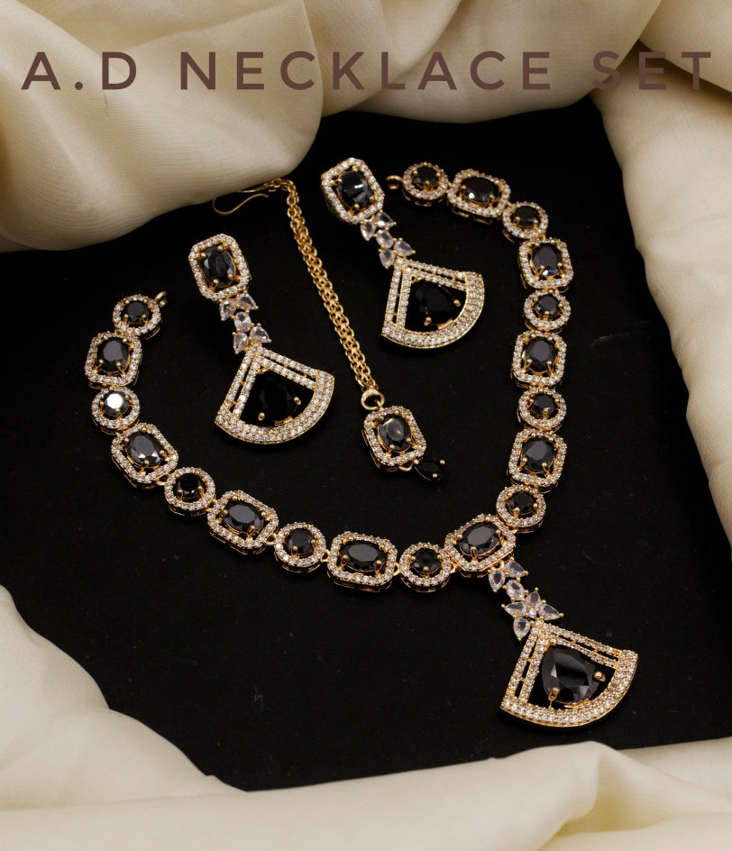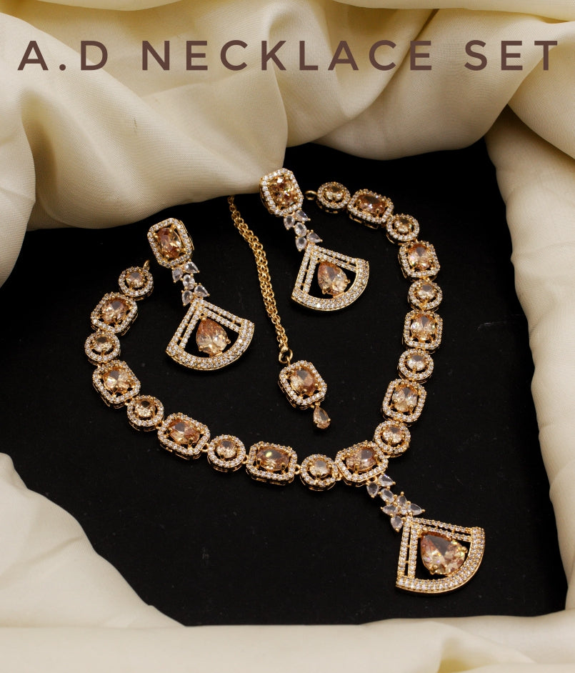 Make every moment unforgettable with this Premium A.D Necklace Setβa luxurious accessory that blends elegance, glamour, and royalty in every detail.