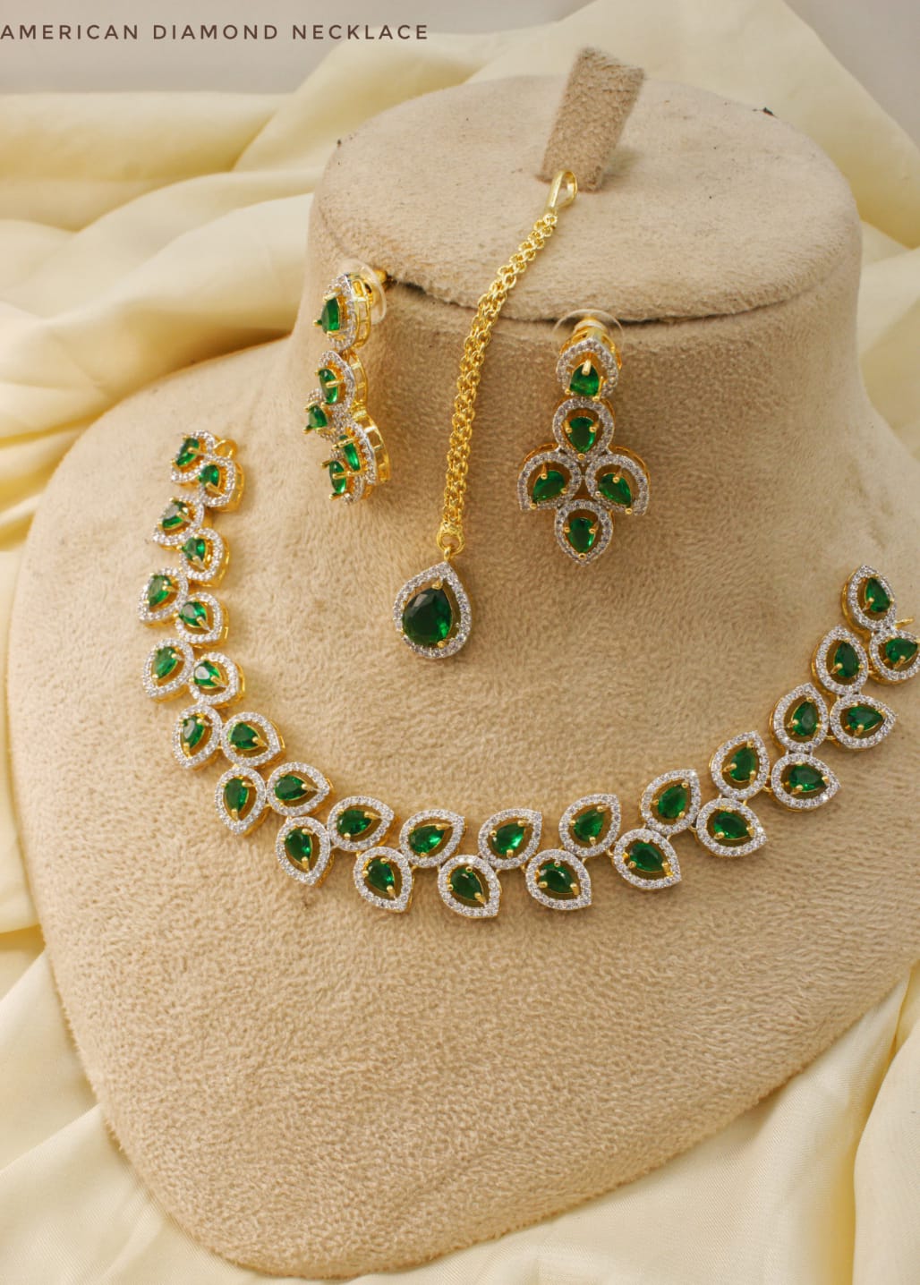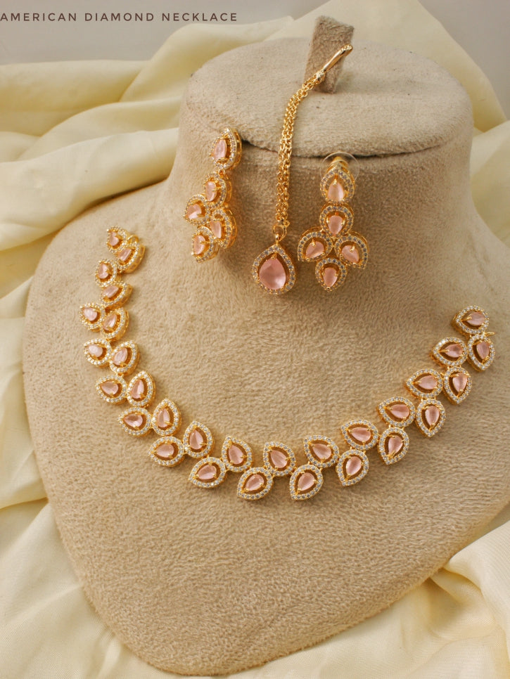 Turn heads with our Stunning American Diamond Necklace Set, expertly crafted for timeless beauty and unmatched sparkle. With 11 gorgeous colors to choose from, it’s the perfect accessory for weddings, parties, or adding glamour to your everyday style. Designed to combine elegance, durability, and comfort, this set is a must-have for your jewelry collection.