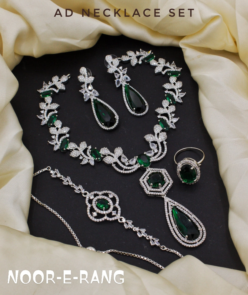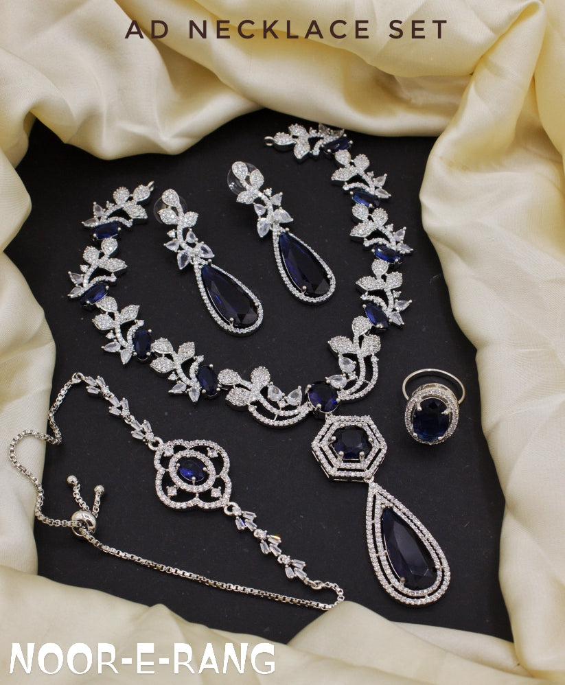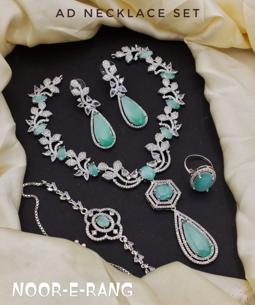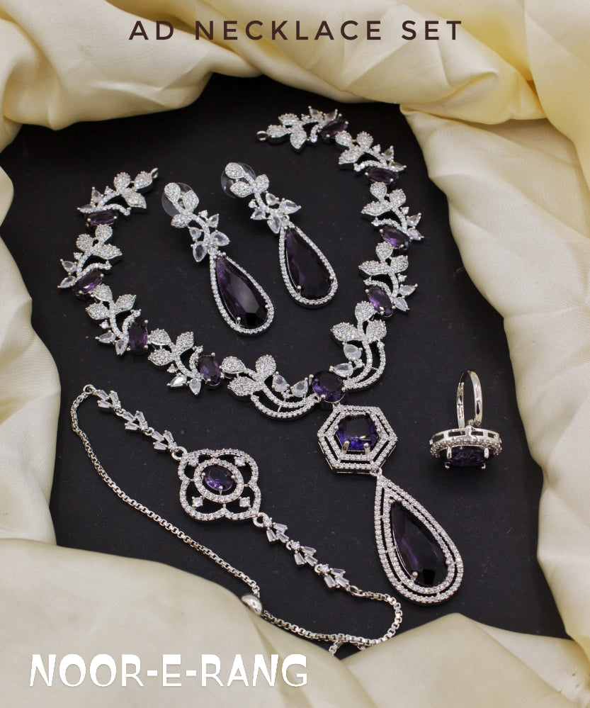 Turn every occasion into a royal affair with our Exclusive American Diamond Necklace Sets, available in 8 exquisite color options. Each piece is meticulously designed with premium-quality stones to deliver unmatched brilliance and sophistication. Whether for weddings, parties, or gifting, these sets add a luxurious touch to any outfitβperfect for making a statement without compromising comfort.