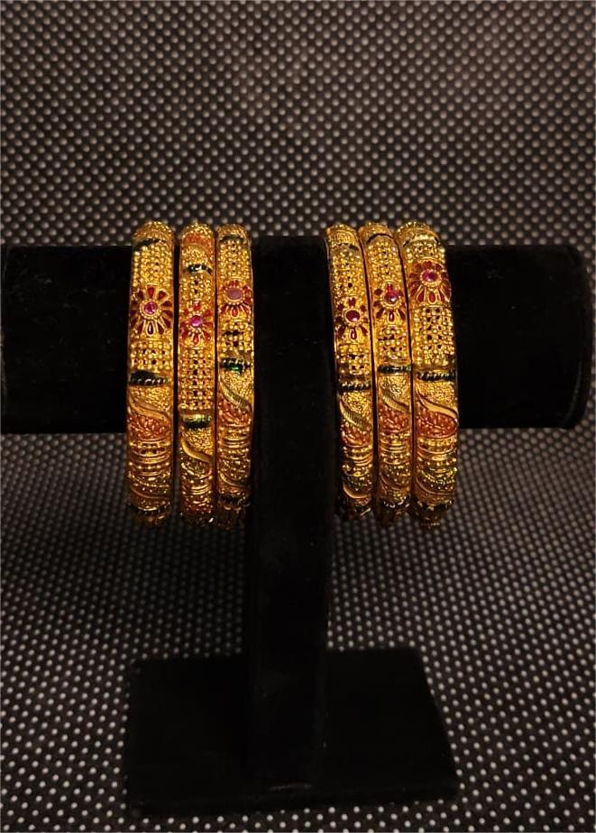 Crafted to perfection, this bangle set brings an aura of royalty to any outfit. Whether it’s a wedding, festival, or any celebratory event, these bangles are sure to make you the center of attention.
